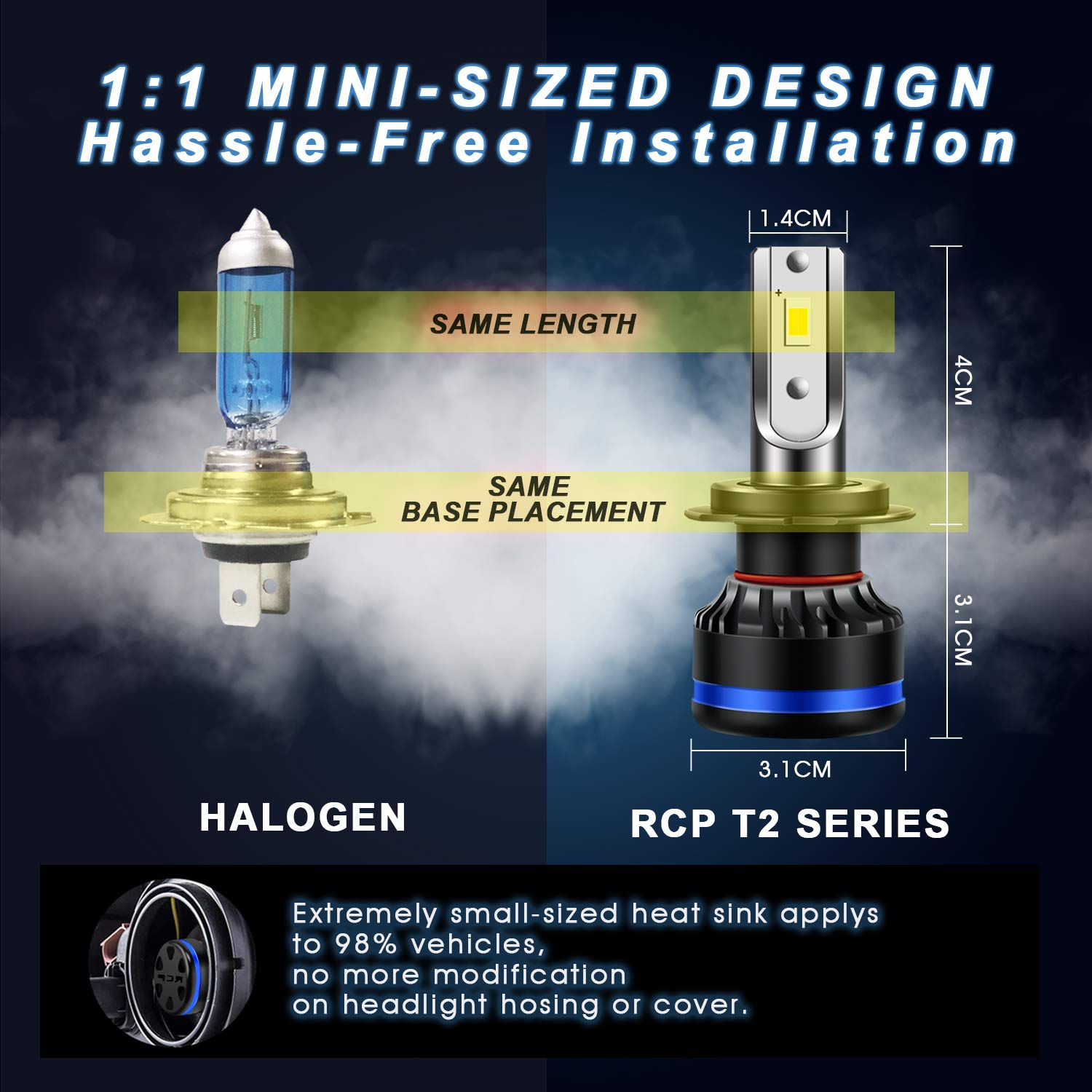 H7 6000K LED Headlight Bulbs T2 Upgraded Mini Size Conversion Kit