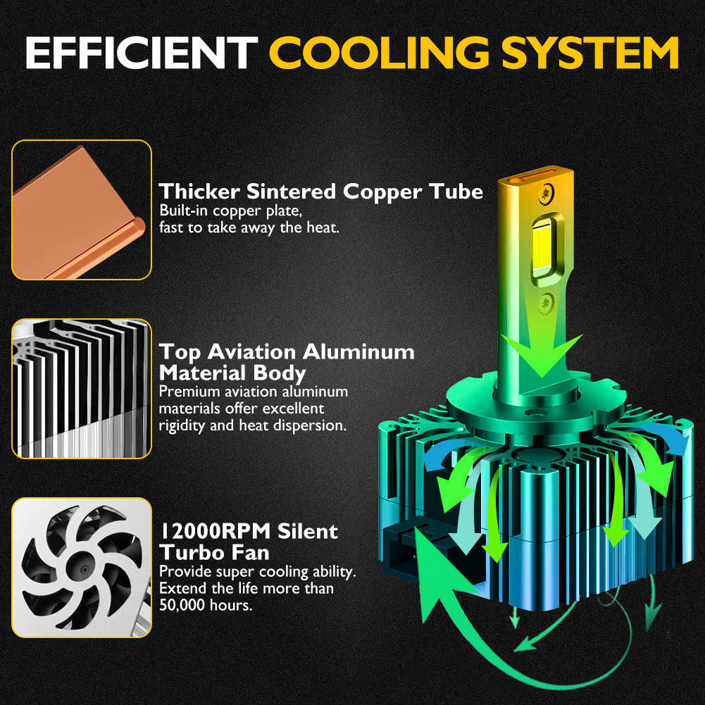 D1S/D1R led headlight bulb has a perfect beam pattern, ensures wider and further lighting area, no glaring to oncoming traffic. IP68 waterproof feature reduces the chance of rain leakage and short circuit occurring. makes it work perfectly on any severe weather, like a rainy day, snowy day, foggy day, hazy weather, etc.