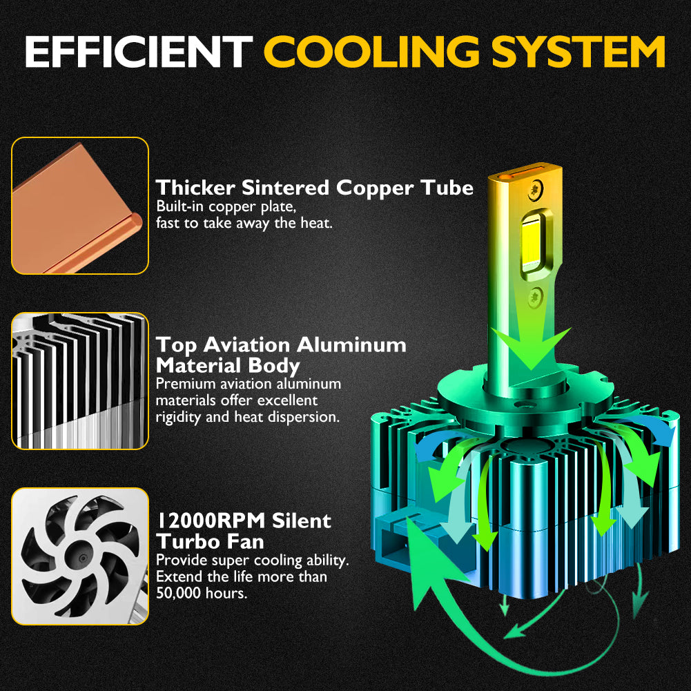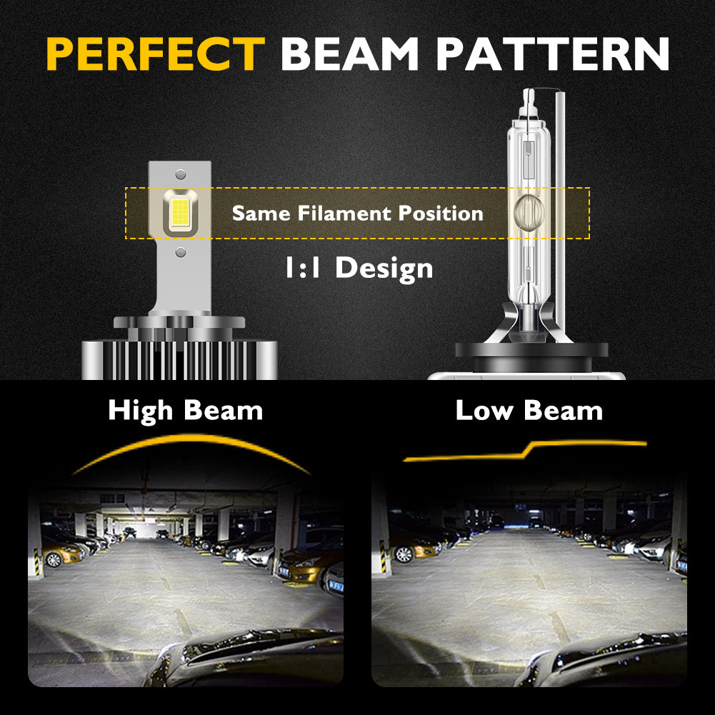 D1S/D1R led headlight bulb has a perfect beam pattern, ensures wider and further lighting area, no glaring to oncoming traffic. IP68 waterproof feature reduces the chance of rain leakage and short circuit occurring. makes it work perfectly on any severe weather, like a rainy day, snowy day, foggy day, hazy weather, etc.