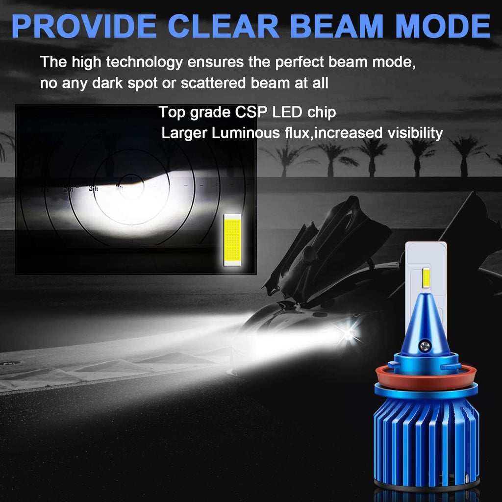 - 【Super Bright】WinPower H11B led headlight bulbs, super bright and energy-efficient bulbs with 70W per pair (35W per bulb). Bulb two sides with newest Korean CSP chips, 10400 LM brightness. 300% brighter than halogen headlights.