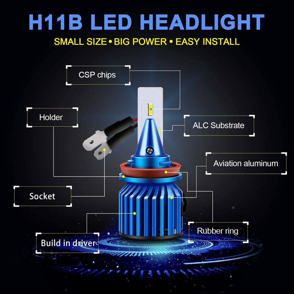 - 【Cooling System】For cooling, the H11B bulb includes aviation aluminum heat sinks, 6063 aluminum shell and 14,000 RPM high-speed mini fan for heat dissipation, which ensure continuous full lumens output and prolong the LEDs lifespan.