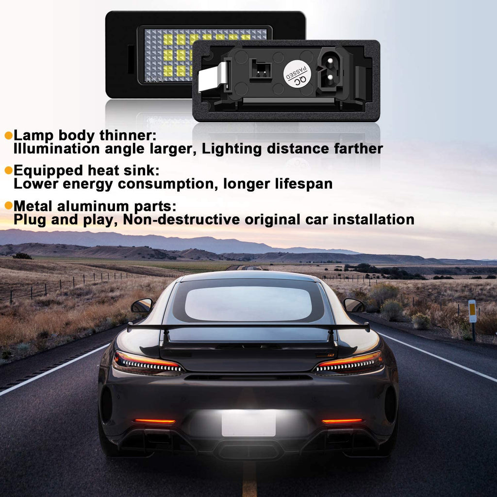 - The plate lights use an error-free Canbus design to avoid OBC error codes. Built-in CAN-bus resistor, complete no onboard computer error, no wiring or modification required, plug-and-play installation.