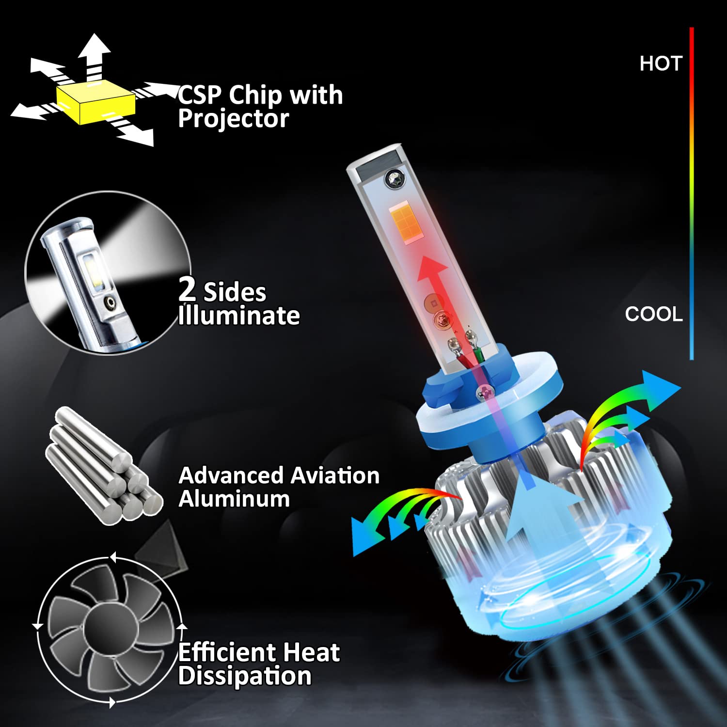 - 880/881 led headlight bulbs, Super bright and energy-efficient Turbo bulbs with 70W per pair (35W Per bulb), 7200LM LED bright light. 200% brighter than Halogen headlights.