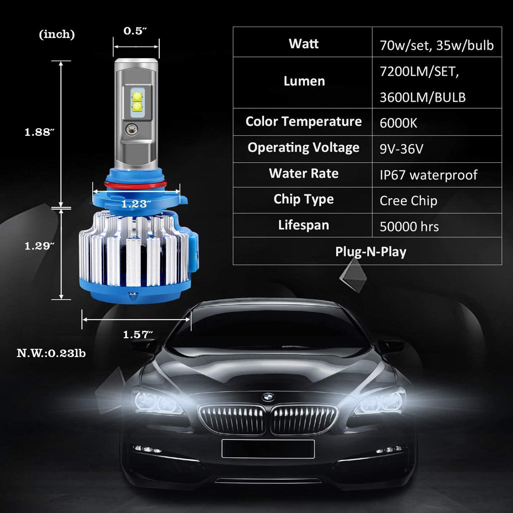 Package Included: 2pcs 9006 LED Headlights Bulbs (T1)