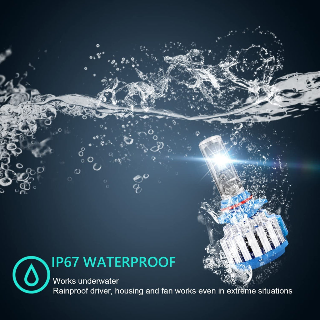 - These 9006 LED headlights are all-in structure, heat resistant, water, dust and shock proof. The waterproof design make your drive more safely in rainy and extreme weather , ensure that the headlight can work in all kinds of weather and clearly light up the road.